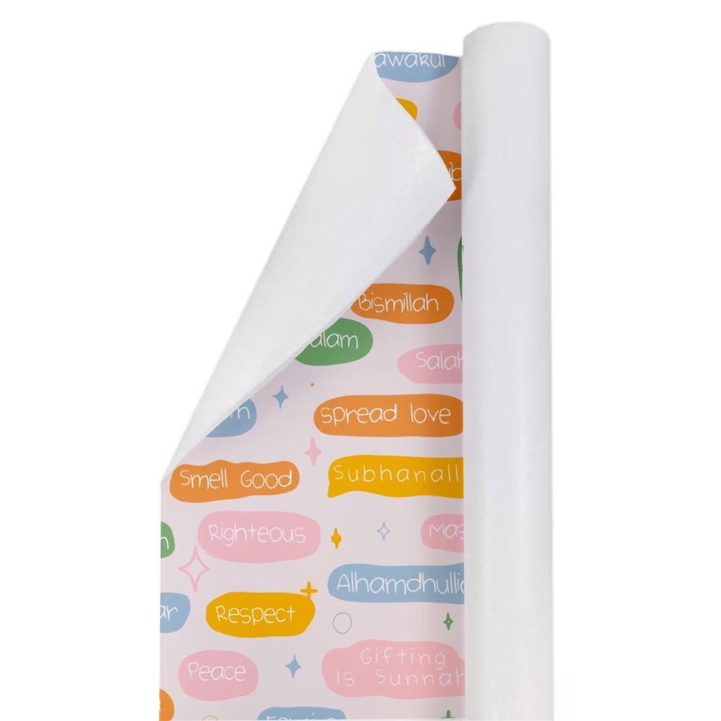 An elegant Islamic gift wrapper featuring a modern, colorful design with timeless Islamic phrases and values. Thoughtfully crafted to add a refined and meaningful touch to every gift.