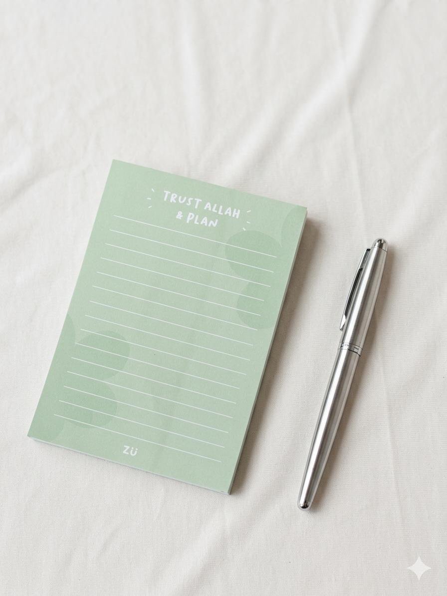 Plan your day while placing your trust in Allah. The Trust Allah & Plan Notepad is designed to help you stay organized, productive, and mindful in your daily routine.